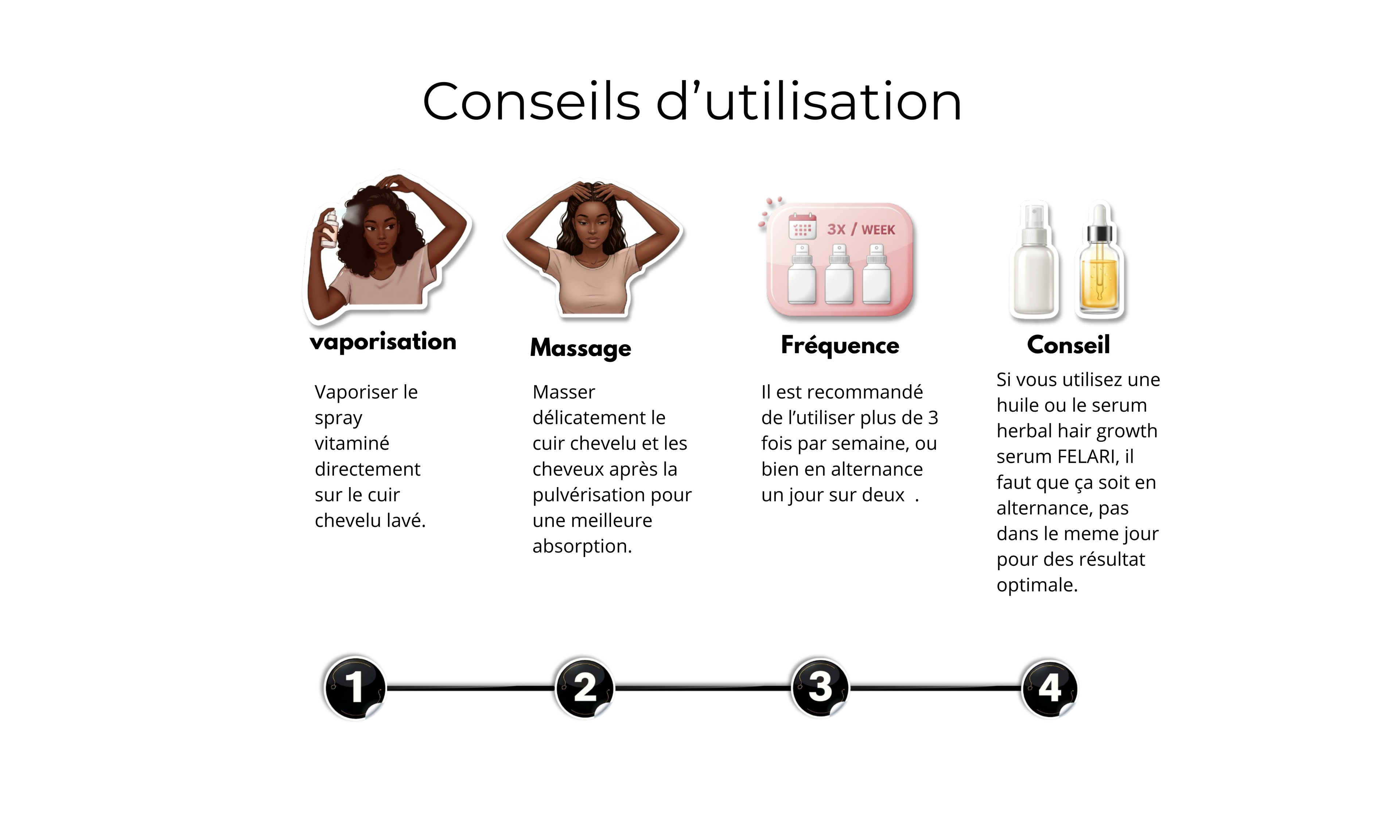 Les améliorations sont visibles entre 2 à 6 semaines avec une routine naturel. Mais pour une transformation profonde (repousse, équilibre du cuir chevelu, réduction de la chute adaptation …), il faut compter de 2 à 3 mois.